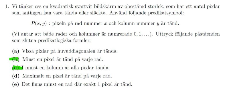 Logik Predikatlogik: formalisering uppgift b) och c)