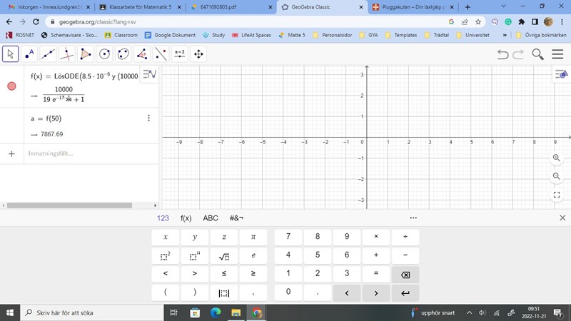 Sedan vet jag att man ska använda geofebra lösODE för att lösa ekvationen men jag kommer inte riktigt ihåg hur, någon som vet hur man gör?