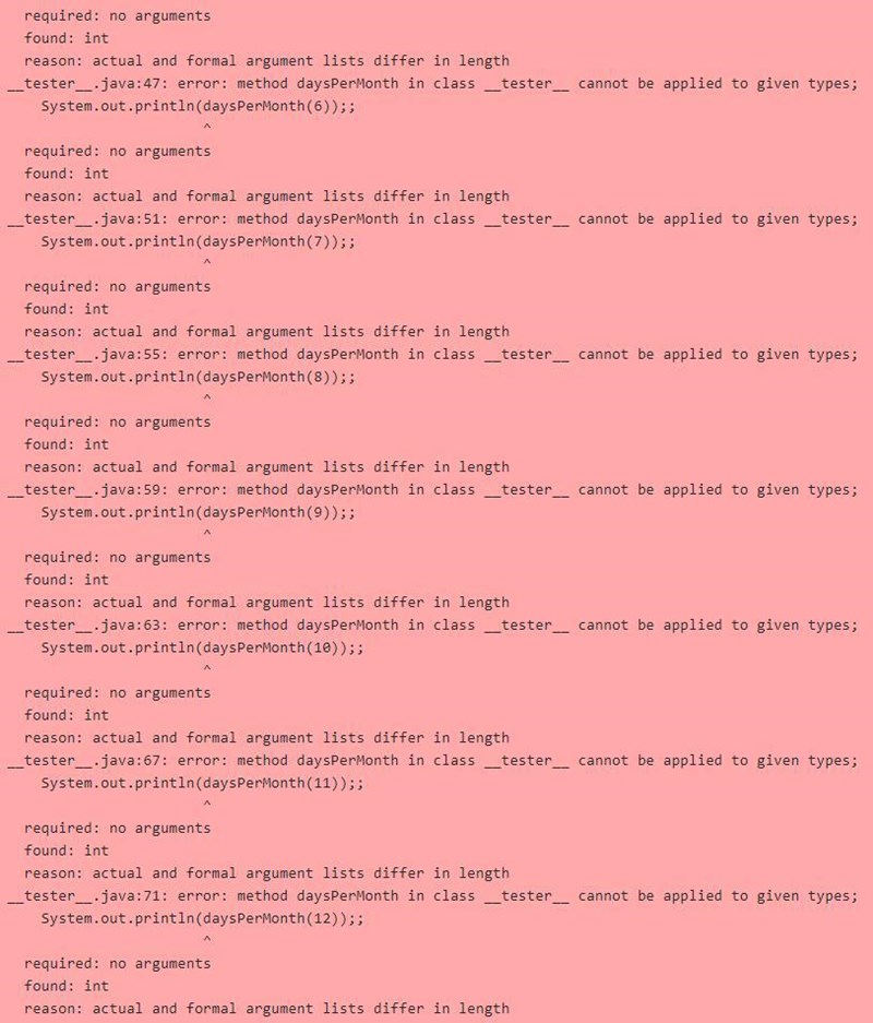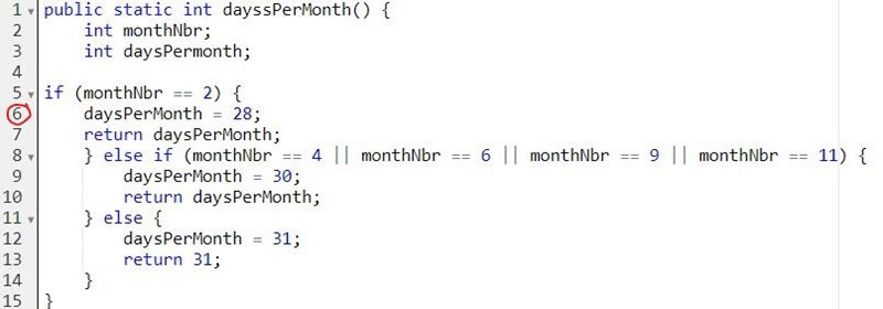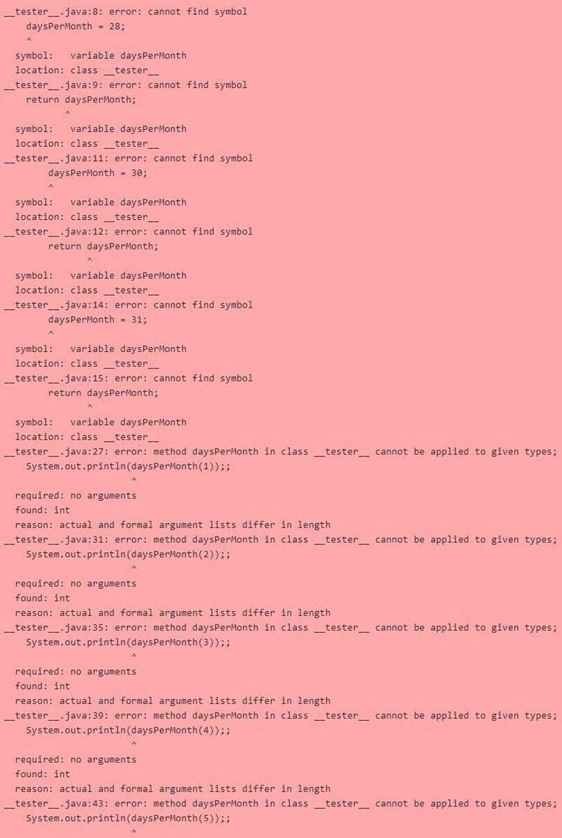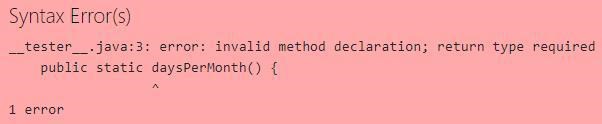 EDIT: Jag ändrade nu i koden, rad 13: "return daysPerMonth;".