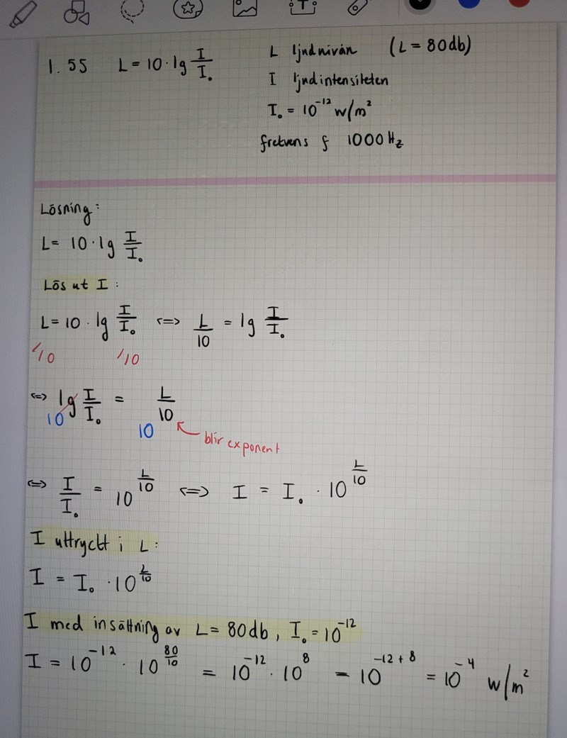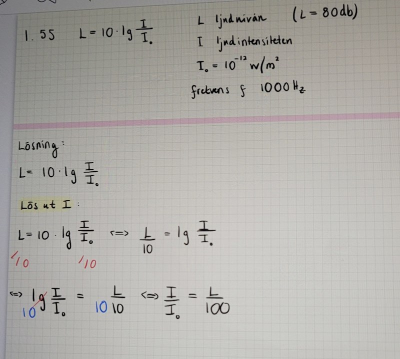 Den sista raden känns inte helt rätt. Jag vet att 10 och lg tar ut varandra, vart hamnar 10:an på andra sidan likhetstecken?