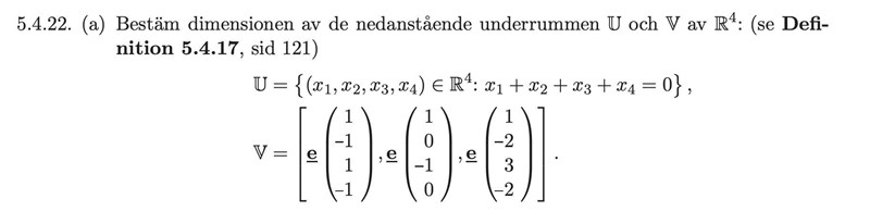 Det betyder att de två första vektorerna är en bas för . Således har vi att dim = 2.