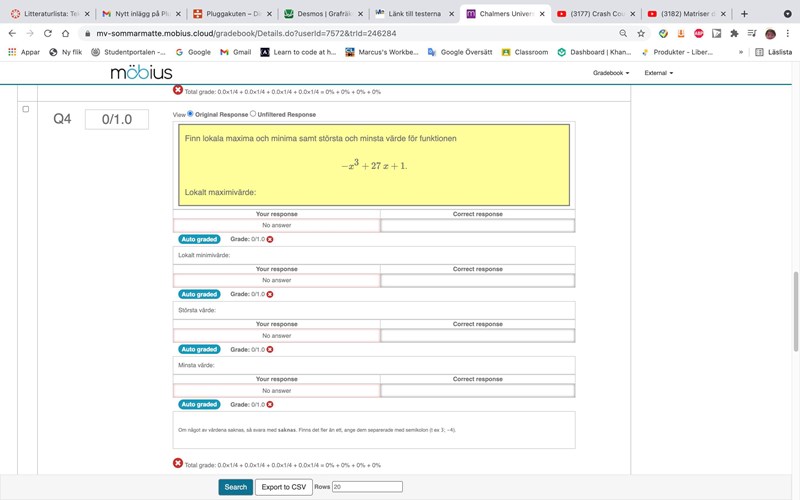Marcus N skrev:Så när ja testat med andra derivatan. Så fick ja max värde och min värde blir samma, så kanske även globalt max och min värde är samma som lokalt max och min värde för den här uppgiften? Eller ?