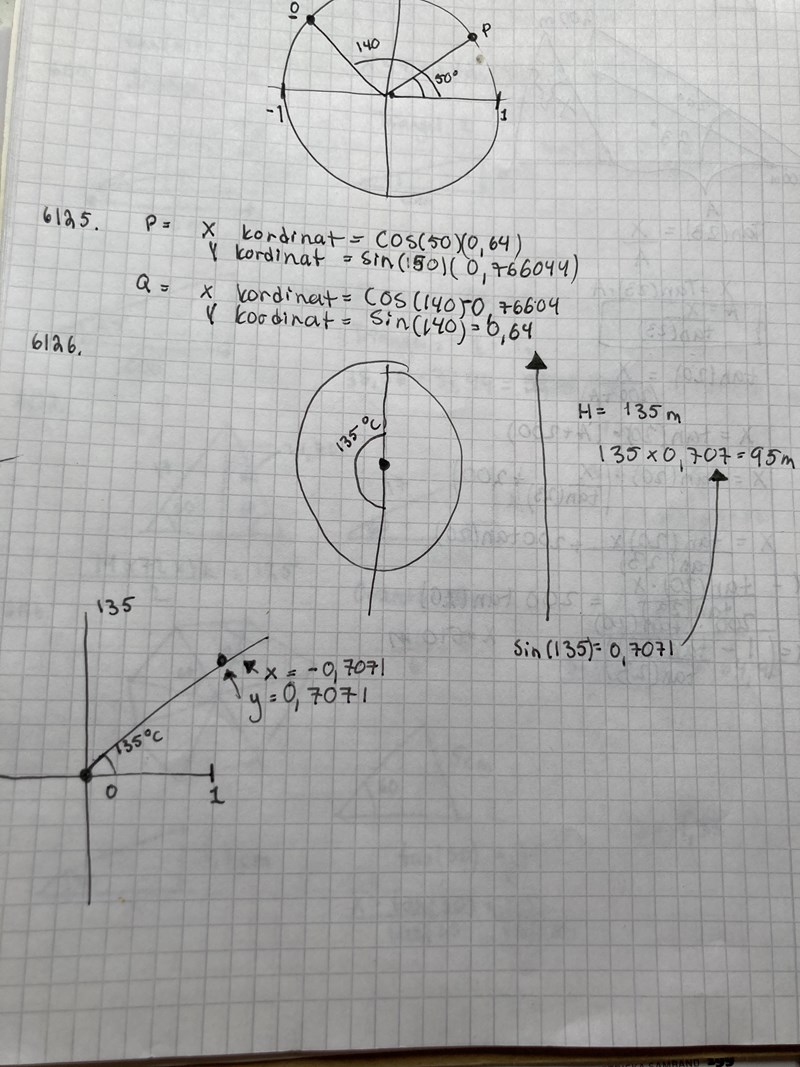 Vi säger att du start från punkten (0,-1) och rör dig 135 grader. När du är klar kommer du befinna dig på höjden (sin 45).