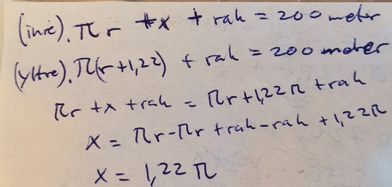 (Yttre halvcirkel +1, 22) + x =200