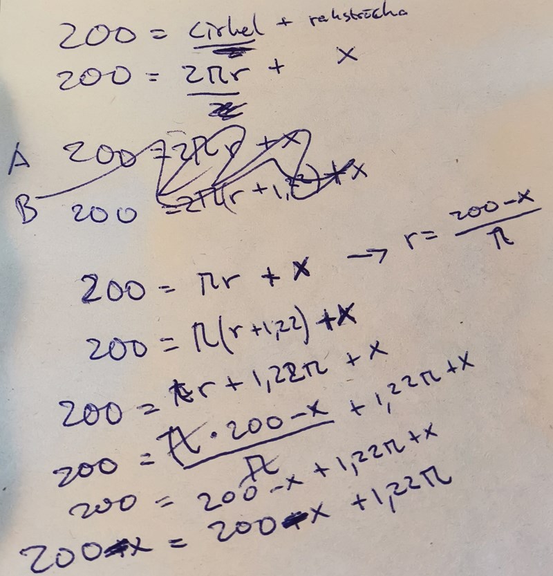 Halvcirkel + x = 200