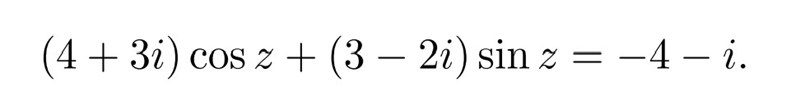 Lös (4+3i)cosz+(3-2i)sinz=-4-i