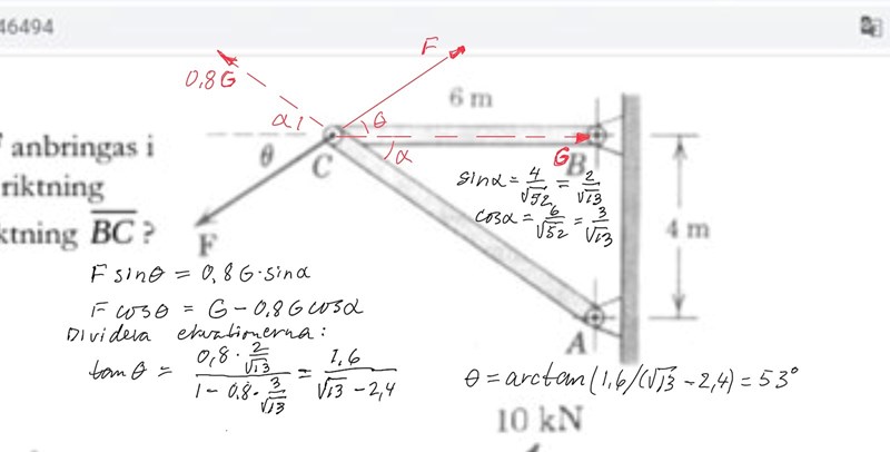 FBC är stångkraften i stången BC.