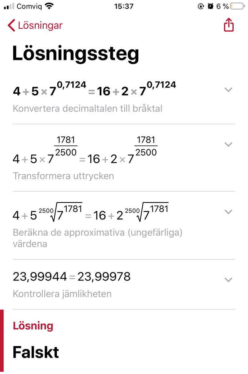 Sätt in x = 0,7124 i din ekvation. Blir högerled lika med vänsterled?