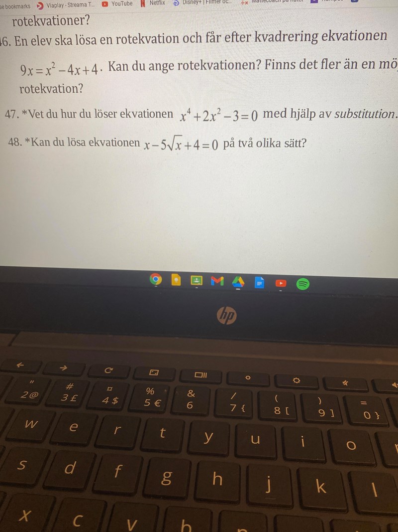 Nu har du två ekvationer som du skall lösa: x2 = 1 och x2 = -3. Kan du lösa dem?