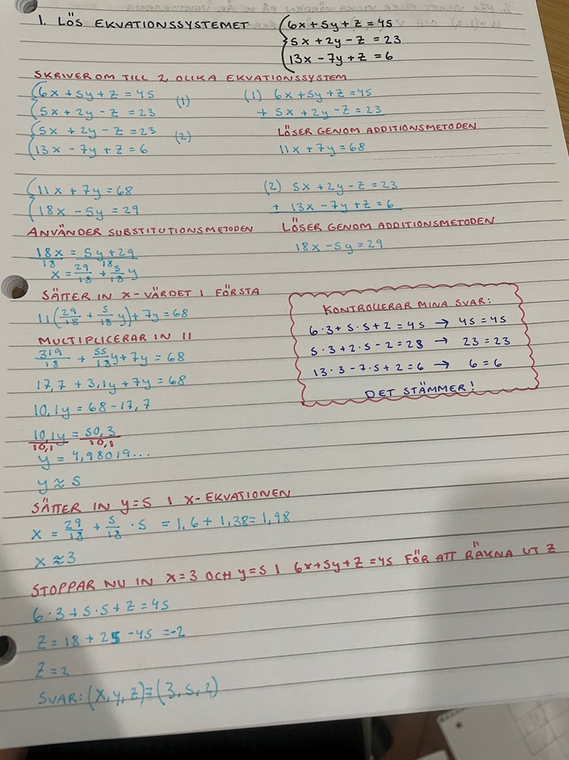 Din lösning är svårt att följa, Jag skulle ha gaussat istället.