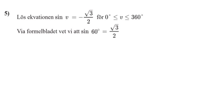 Det bästa sättet är att ta fram en bild på enhetscirkeln och rita in det som är känt i uppgiften.