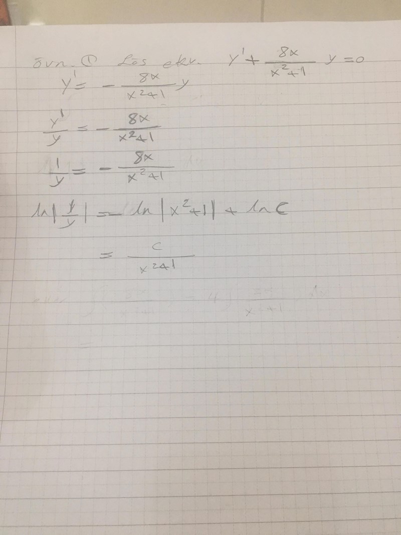 Hej! Jag har löst ekvationen men fått fel svar! På facit då är det C/(x^2+1)^4 .. vad jag gör för fel?