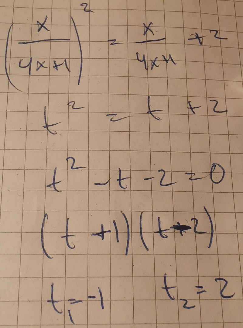 Kan jag ersätta (x/4x-1)^2 med t^2 och (x/4x-1) med t?