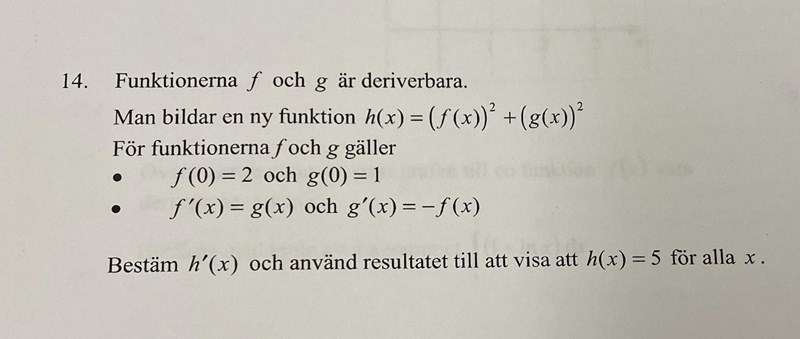 behöver hjälp med denna uppgift, har påbörjat en lösning men är inte säker på deriveringen då jag får att derivatan blir noll.
