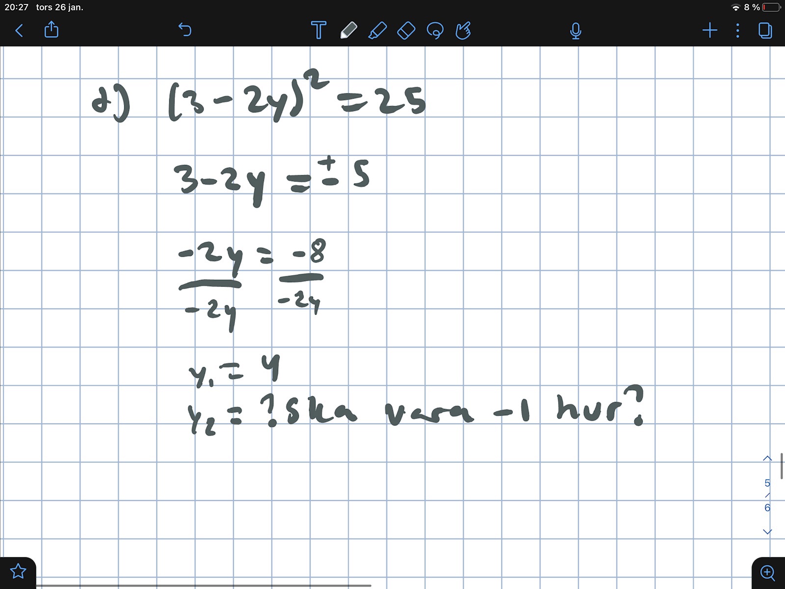 3-2y=-5Subtrahera båda sidor med 3-2y=-8Dividera med -2y=4