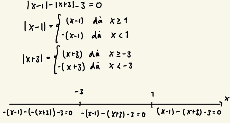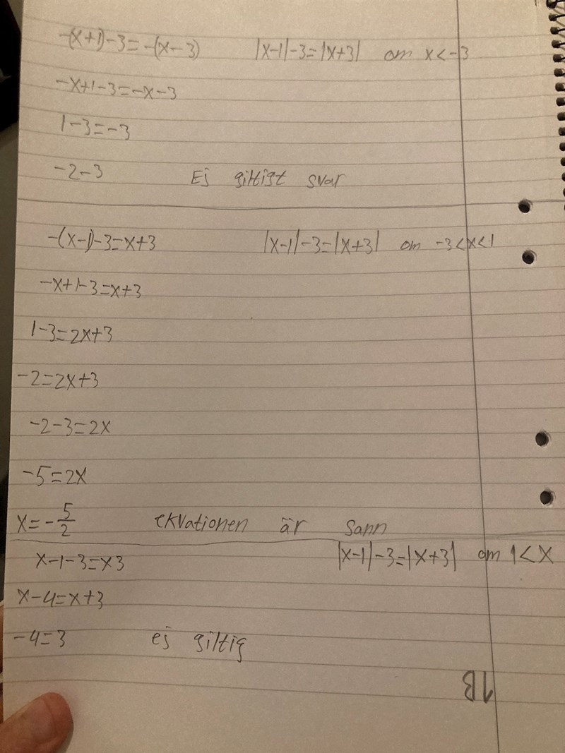 Hur ser ekvationen |x-1|-3 = |x+3| om x < -3?