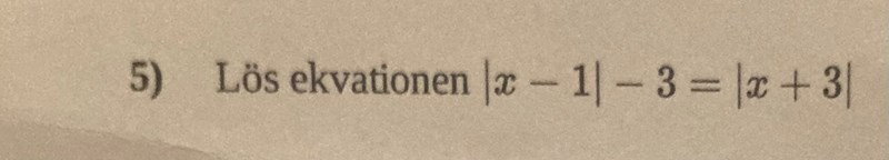 Hur ser ekvationen |x-1|-3 = |x+3| om -3 < x < 1?
