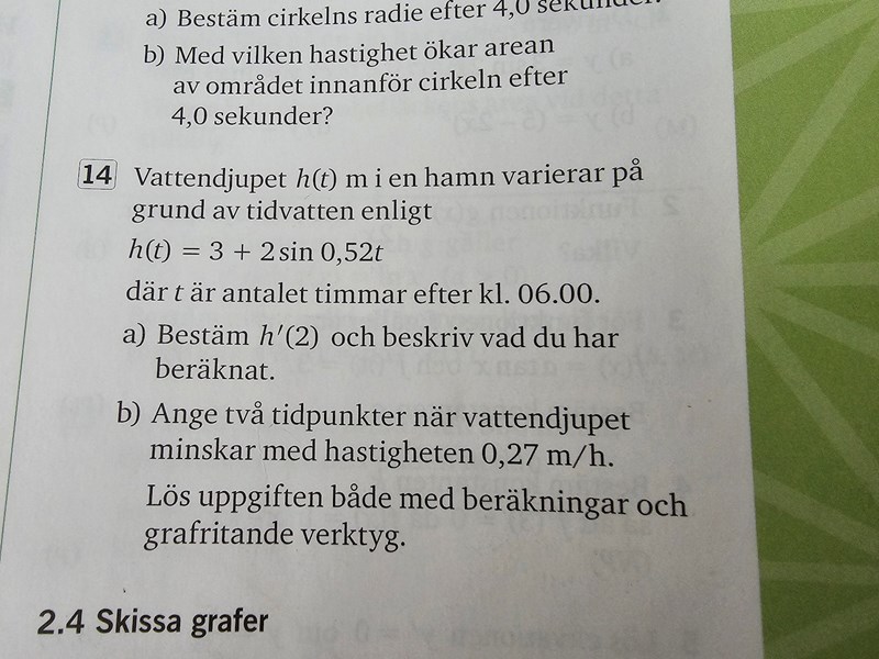 Jag har glömt hur man räknar ut ekvationen: h´(t) = 0,52 * 2cos0,52t. = -0,27.