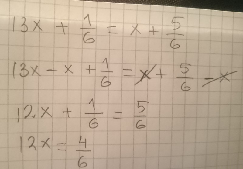 Där har du 13x + 1/6 - x, vilket är lika med 13x - x + 1/6, vilket är lika med 12x + 1/6.