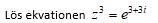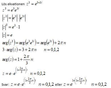 z3=e3+3iz3=e3×e3iz3=e3×e3iz3=r=e3arg(z3)=arg(e3×e3i)=3VL=z3=r3(cos3v+isin3v)HL=e3×e3i=e3(cos3+isin3)VL=HL dår3=e3    r=e3v=3+n×2π   v=1+n×2π3v1=1  ,   v2=1+2π3   v3=1+4π3z1=e(cos1+isin1)z2=e(cos1+2π3+isin1+2π3)z3=e(cos1+4π3+isin1+4π3)