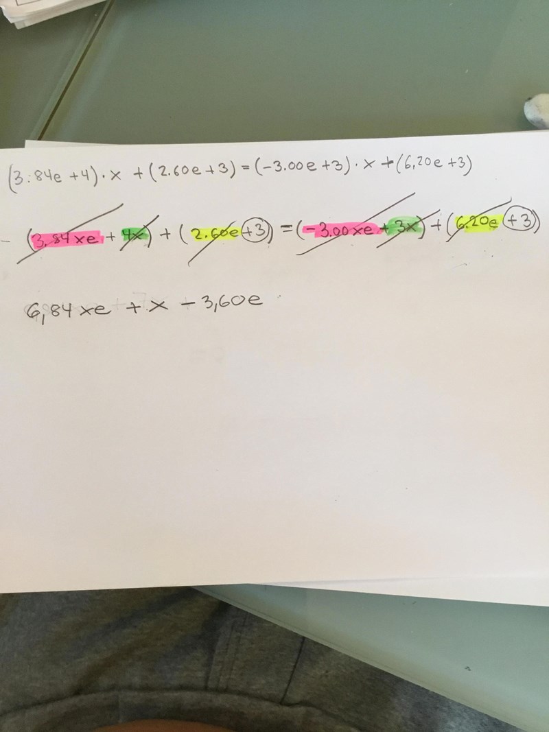 6.84ex + 4x + 2.60e + 3 - 2.60e = 3x + 6.20e + 3 - 2.60e