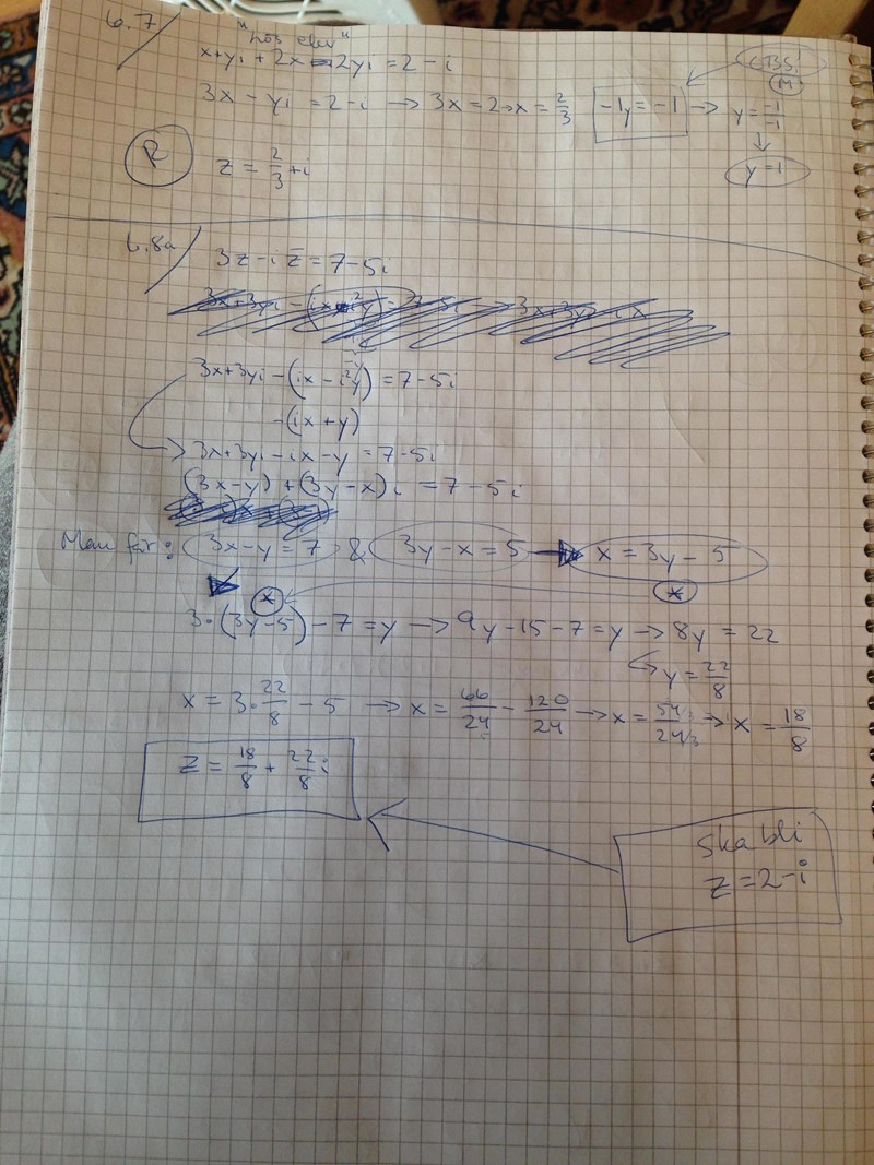 HEOB skrev :Det ser väldigt bra ut fram till raden ´Man får ....´ där ett minustecken borde stå framför femman i andra ekvationen.