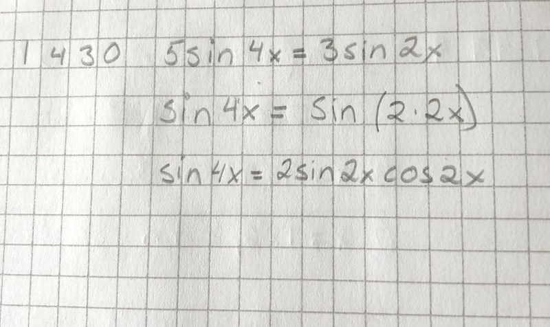 Eftersom sin(4x) = 2*sin(2x)*cos(2x) så är 5*sin(4x) = 5*2*sin(2x)*cos(2x).