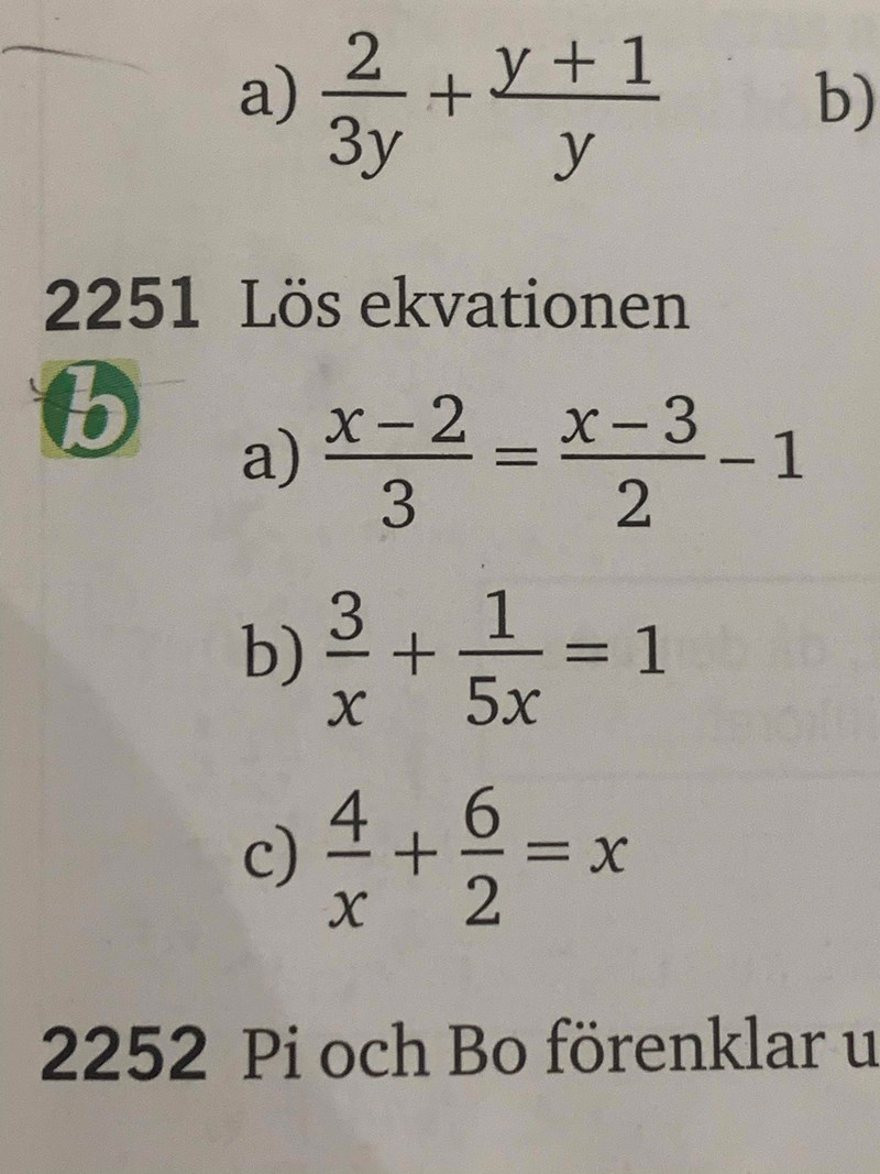 Alltså vilken uppgift menar ni jag menar2251 b (x-2)/3=(x-3)/2-1