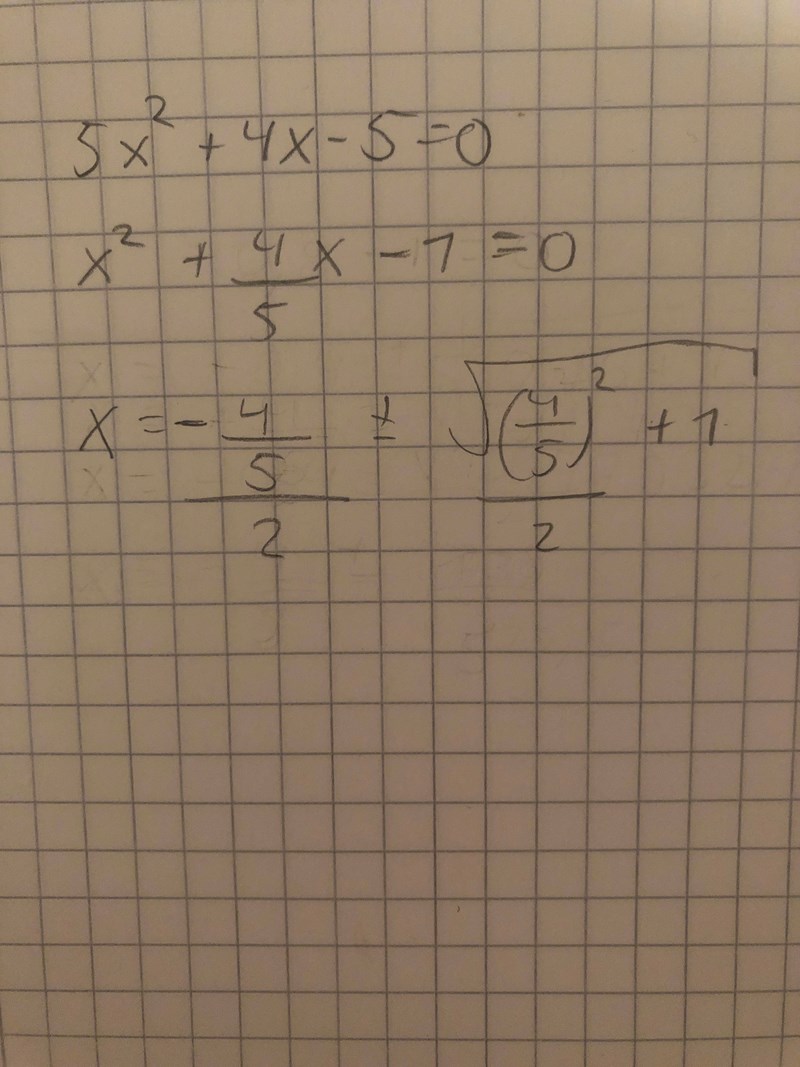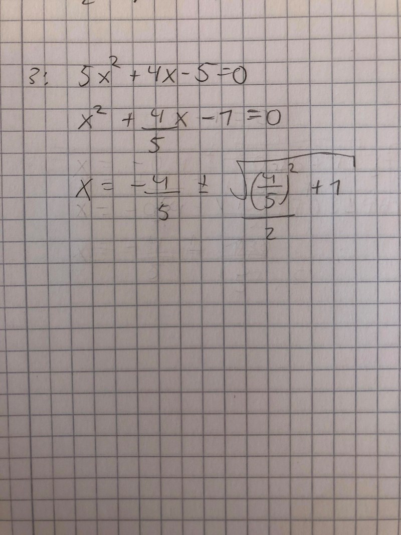 Jag har börjat såhär, facit säger x=-2/5 +- roten ur 29/5