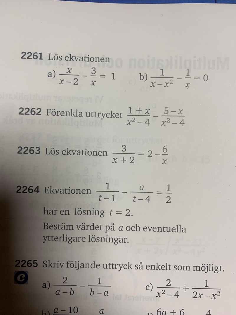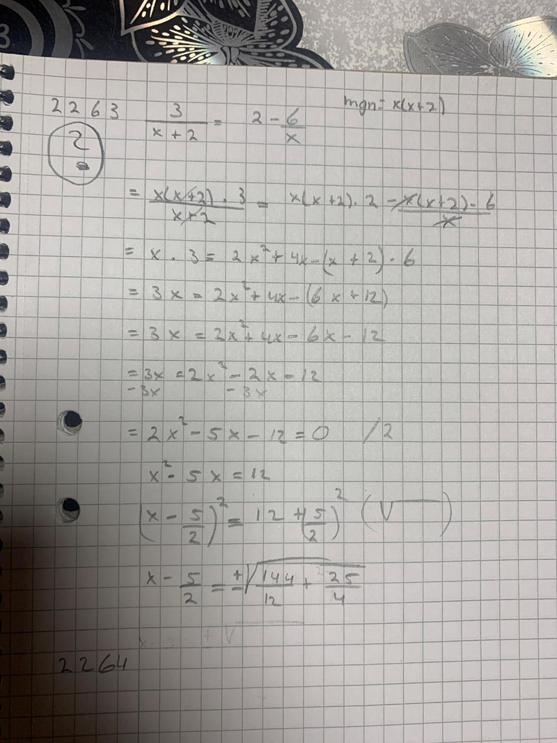 Hej! Jag har försökt att lösa den här ekvationen (2263) och har försökt att lösa den med kvadratkomplettering men strular till det, vad är det jag gör fel? Se lösningen på bilden!