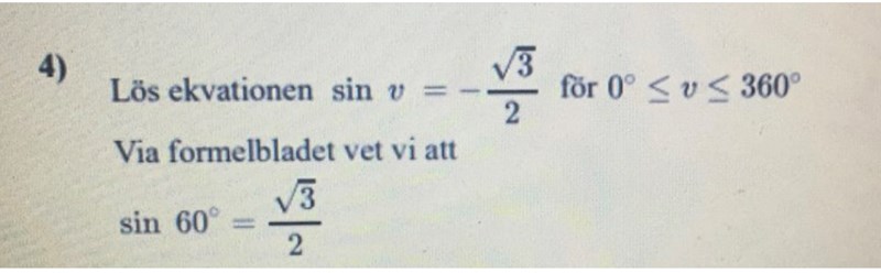 Varför ska man ta 360-v=60? Hur får man fram den andra lösningen?