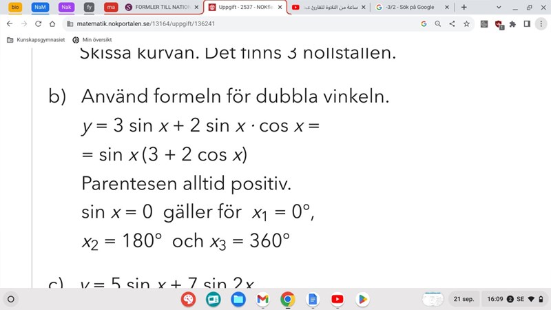 Lös ekvationen 3sinx+sin 2x=0