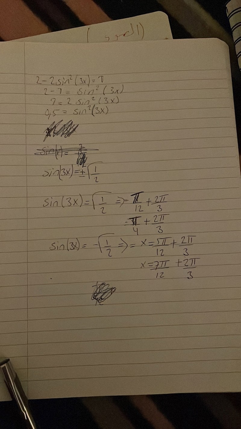 Hej jag behöver hjälp med denna ekvation. 2-2sin^2(3x)=1