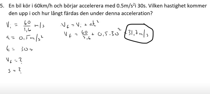 Det ger oss att v(30) = 60/3.6 + 0,5*30 31,7 m/s.