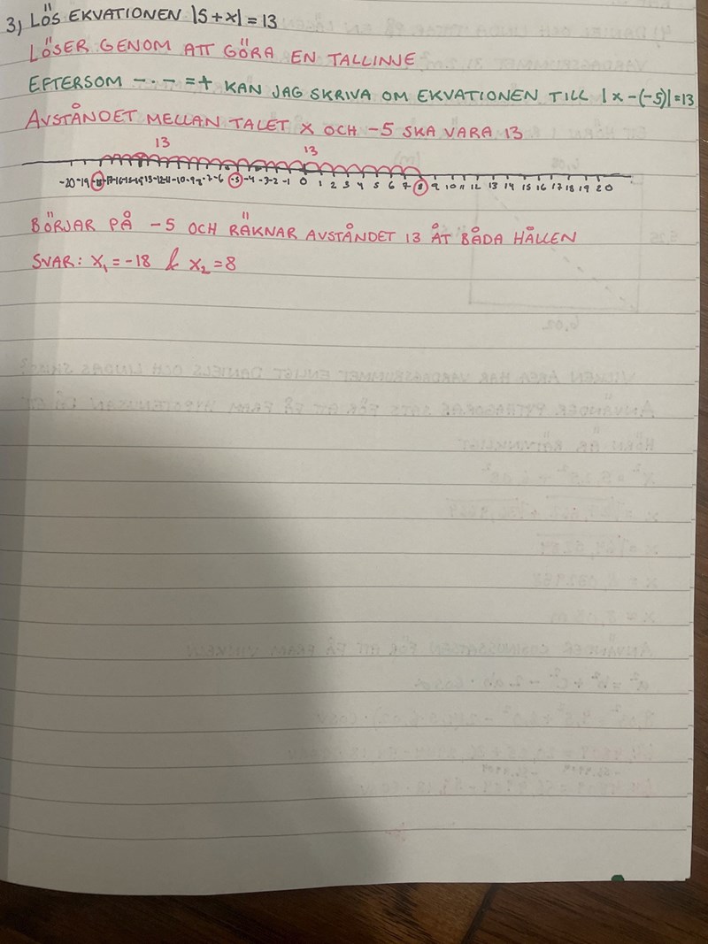 (1) ger x+5 = 13 dvs x = 8. Det svaret är OK eftersom 8 ≥ –5