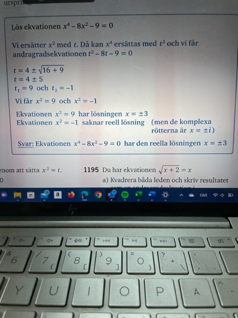 denna ekvation ges det en lösning på i boken men jag förstår inte hur den löses på givet sätt, till exempel, varför ersätter man x^4 med t?