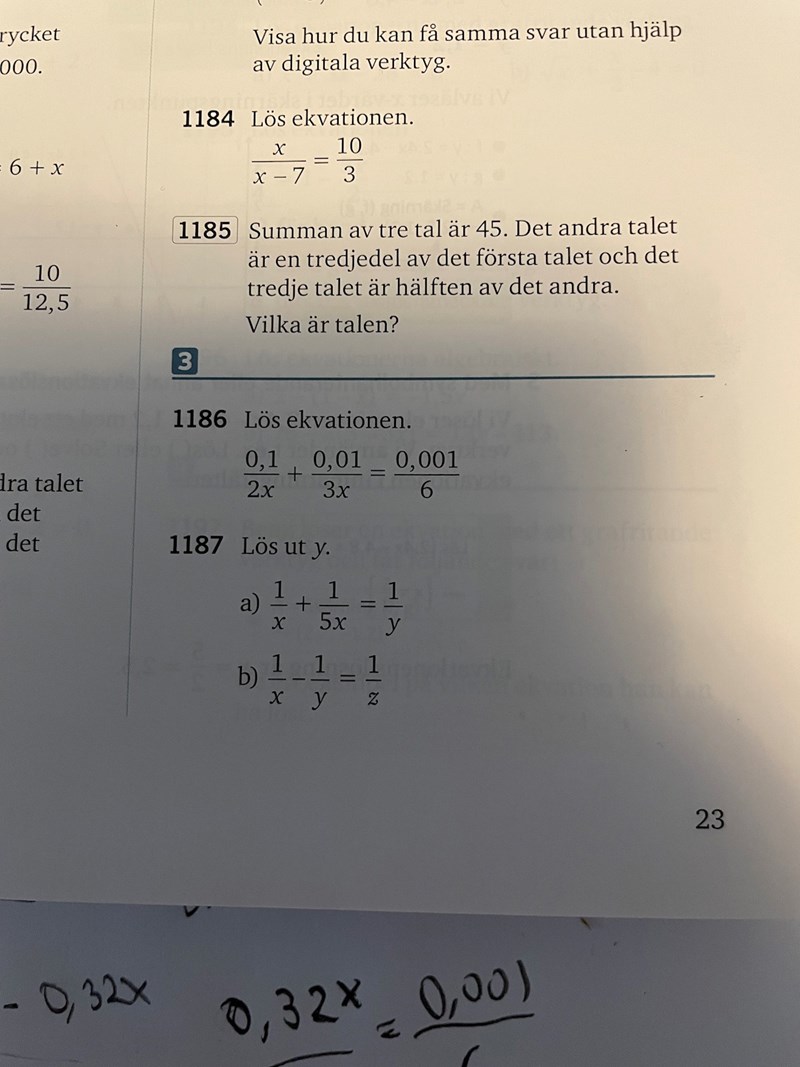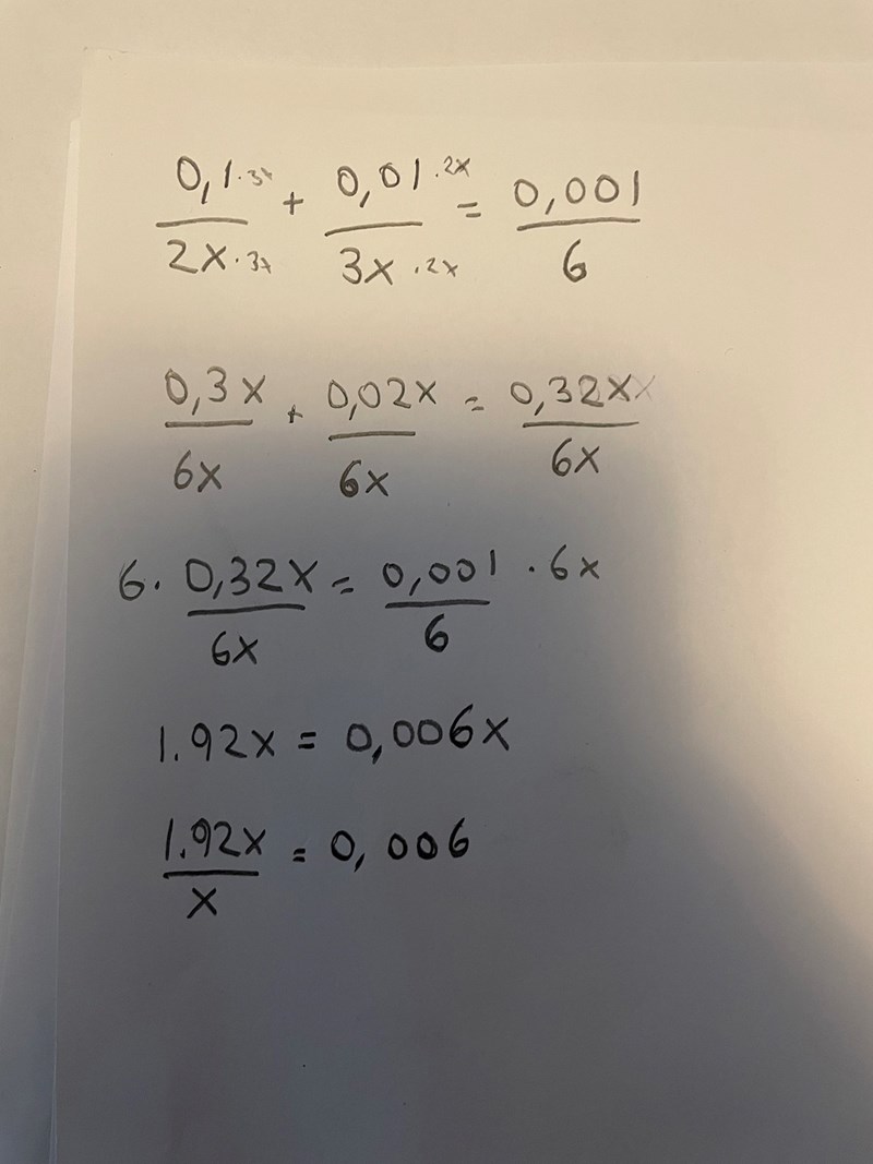 vänstra ledet på gemensamt bråkstreck:  0,32/(6x)