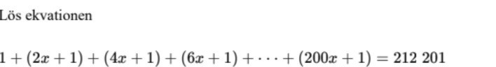 Om du inte har tillgång till eller inte tycker att du behärskar formeln för aritmetiska serier så gör så här: