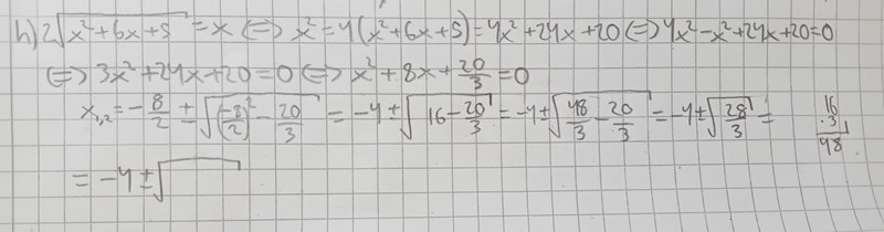 Det är rätt så långt, men tänk på att du har kvadrerat den ursprungliga ekvationen. Det kan bli så att du får ett x som är negativt, men vänsterledet måste vara positivt. Är dina lösningar negativa?