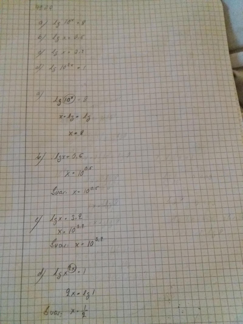 När du skriver "2 gånger x gånger lg = 1" så saknar det du skriver betydelse. Ser du att vänsterledet innehåller en faktor "lg"?