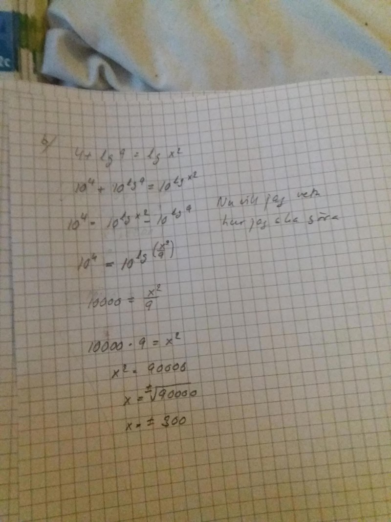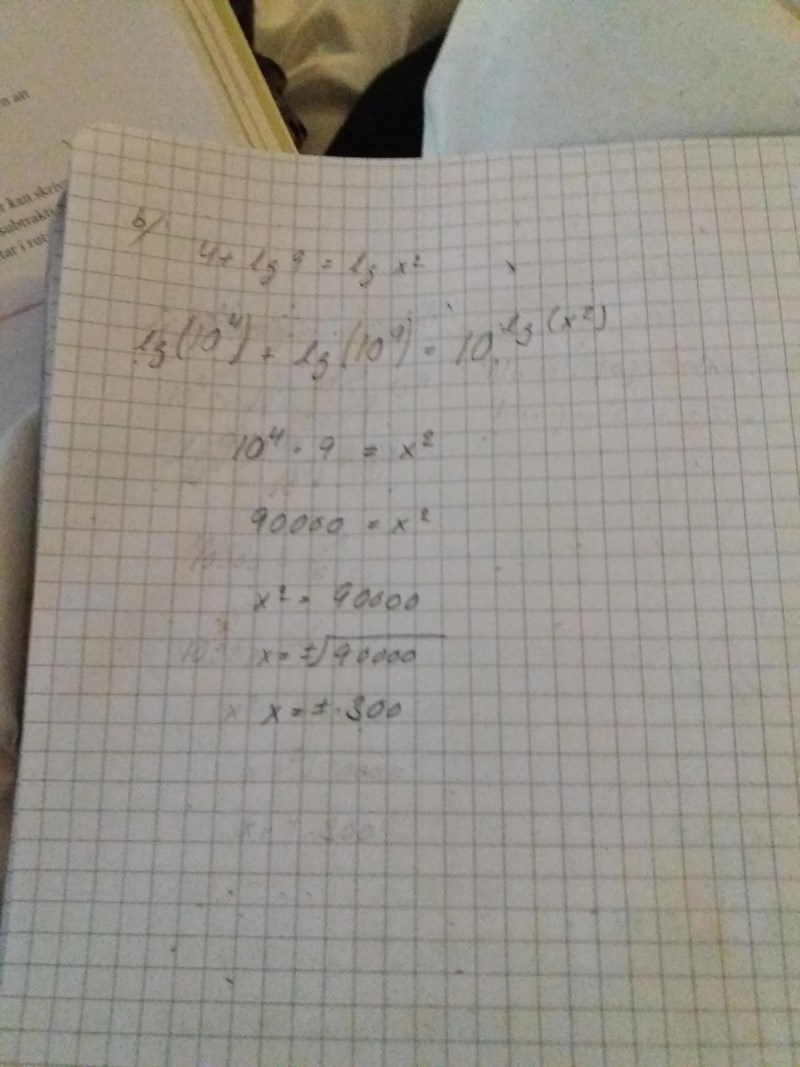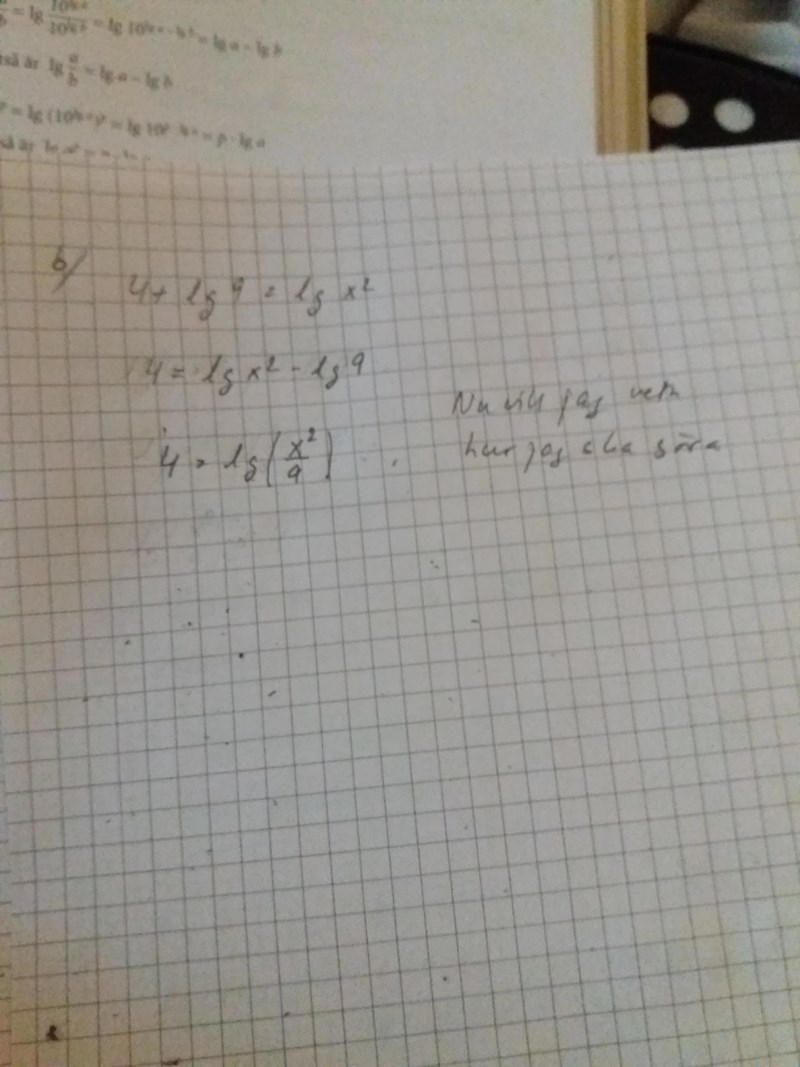 2. Skriv om 4 på ett listigt sätt redan från början, utnyttja att argumenten för lg måste vara samma på båda sidor (vi hoppar över att upphöja 10)