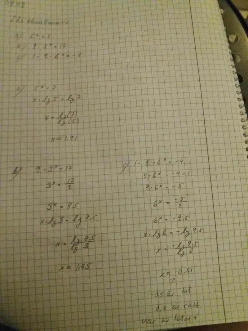 Sedan skrev du att och det stämmer inte. Logaritmen är definierad för positiva tal, inte för negativa.
