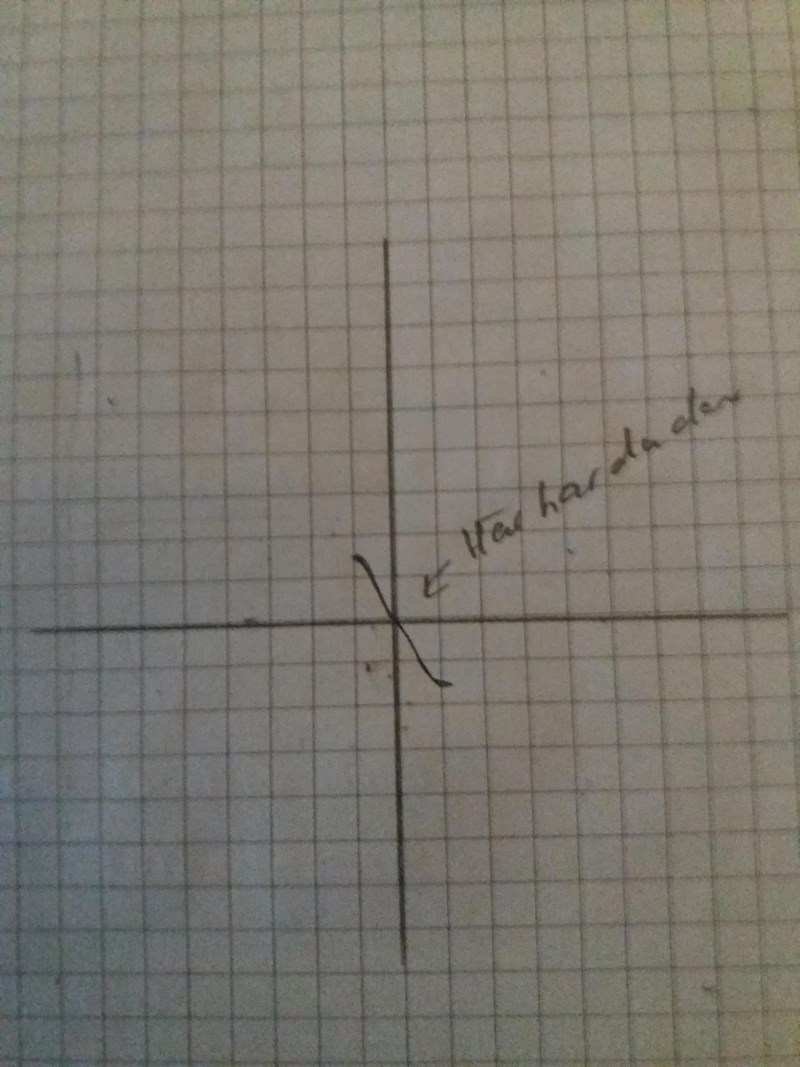 Jag förstod det här att det har med derivatans lutning att göra. Lutningen måste vara mindre än noll. Jag begrep att det måste vara negativ lutning.
