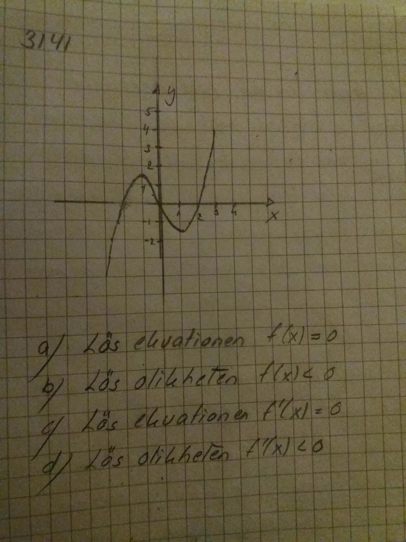 Päivi skrev :Bubo skrev :Vad undrar du, exakt? Uppgiften är Lös olikheten f'(x)<0