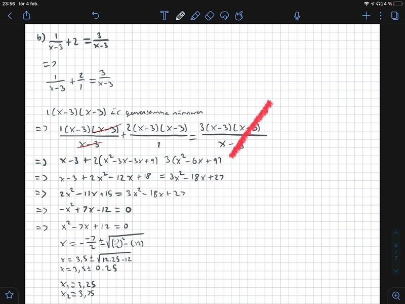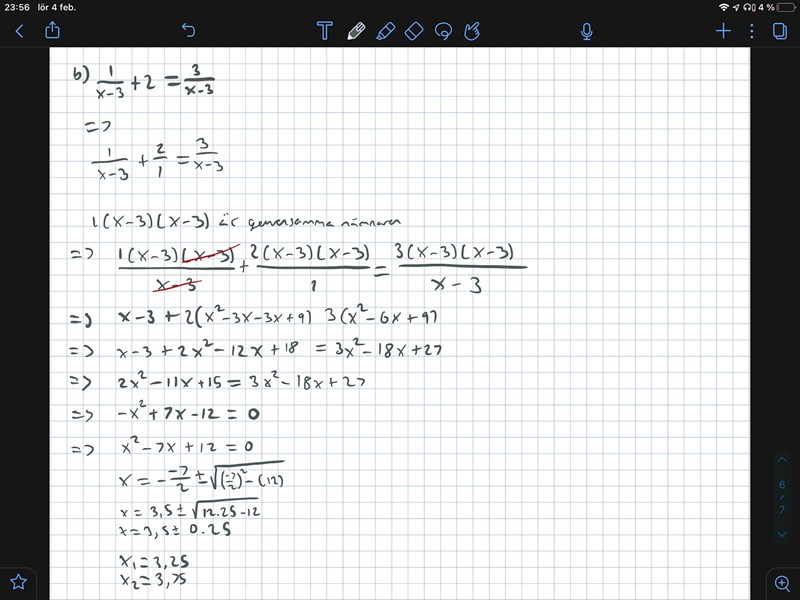 Hej, facit säger att x = 4, och jag fick x = 3,75 och 3,25