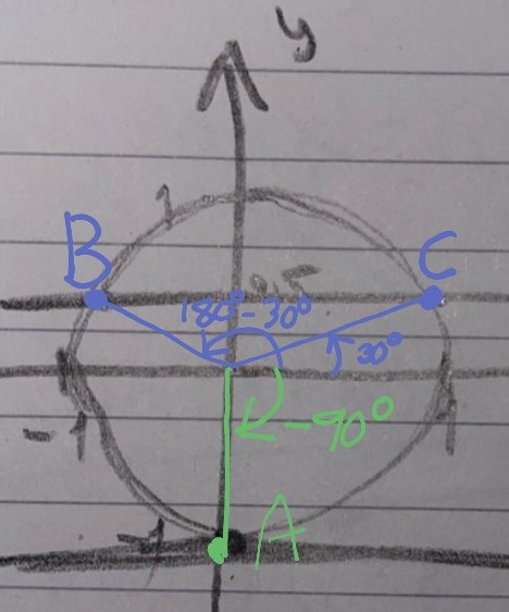 - Punkten B har koordinaterna (cos(180°-30°),sin(180°-30°))