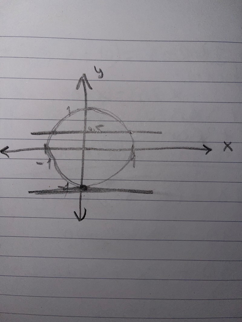 - Om du istället ritar en linje på höjden 0,5 så ser du att den skär cirkeln på två ställen.