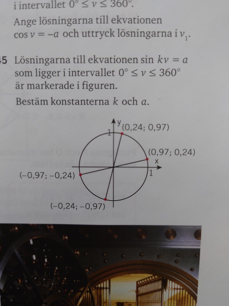 Vad jag kan se så finns det två vinklar i första kvadranten som är arcsin 0,24 och 0,97 vilket ger ca 14 och 76 grader. Sitter fast här