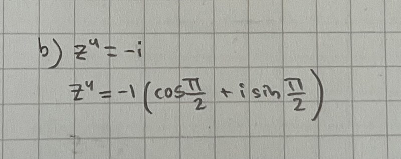 Vi börjar med att ansätta . Du har gjort ett litet fel när du har skrivit om på polär form. Felet är att du har skrivit som radie, men måste per definition vara ett positivt tal. Istället måste man skriva om det så här: