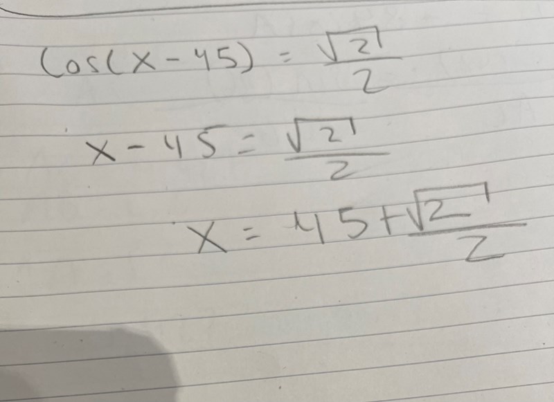 Cos(x-pi/4)=√2/2